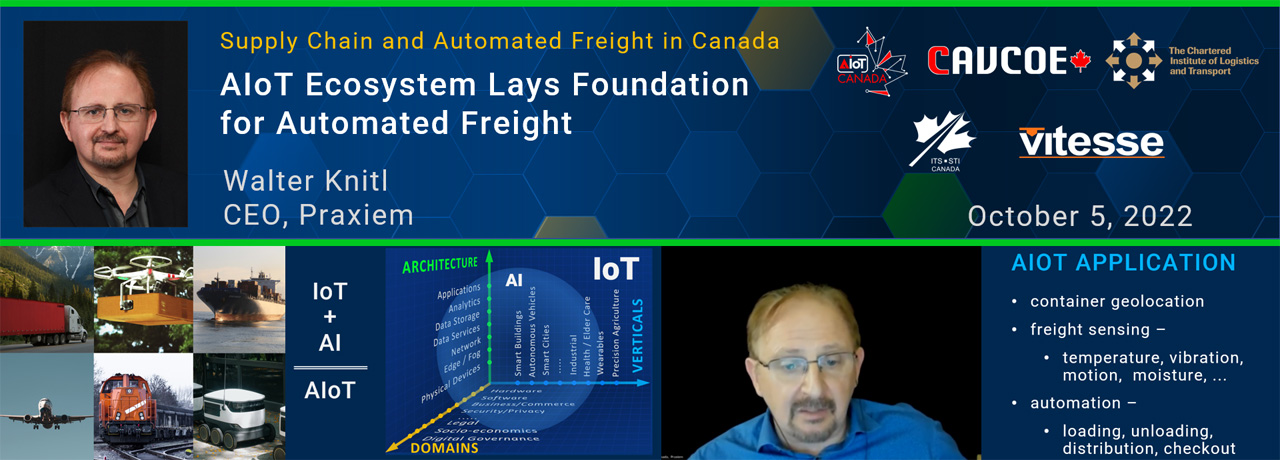 Webinar on supply chain and automated freight in Canada, a collaboration by five organizations, exploring opportunities for automating freight and supply chain to mitigate effects of global stresses including the pandemic and a war.