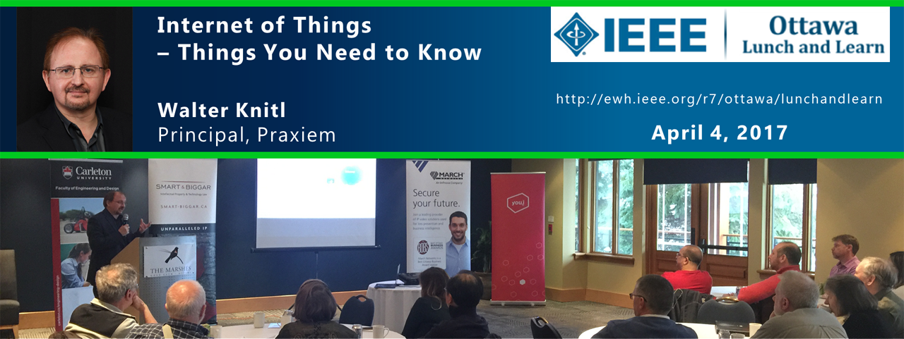 The presentation delivered by Praxiem broke down the siloed impressions of IoT and exposed the full scope of the IoT space.  Borrowing from Praxiem’s full IoT workshop, it also covered aspects of IoT architecture, several application verticals and other topics to help attendees discover IoT opportunities and pitfalls.
