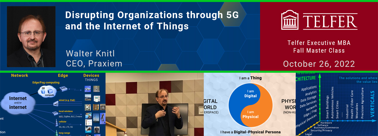 Master Class for Telfer Executive MBA alumni on disrupting organization through new technologies, including IoT, AI, 5G and a exploration of Moore’s law by Hojjat Salemi.